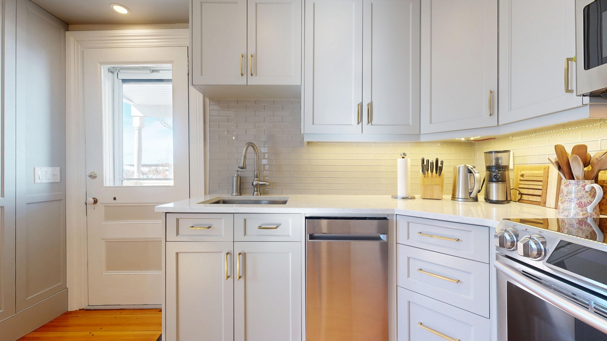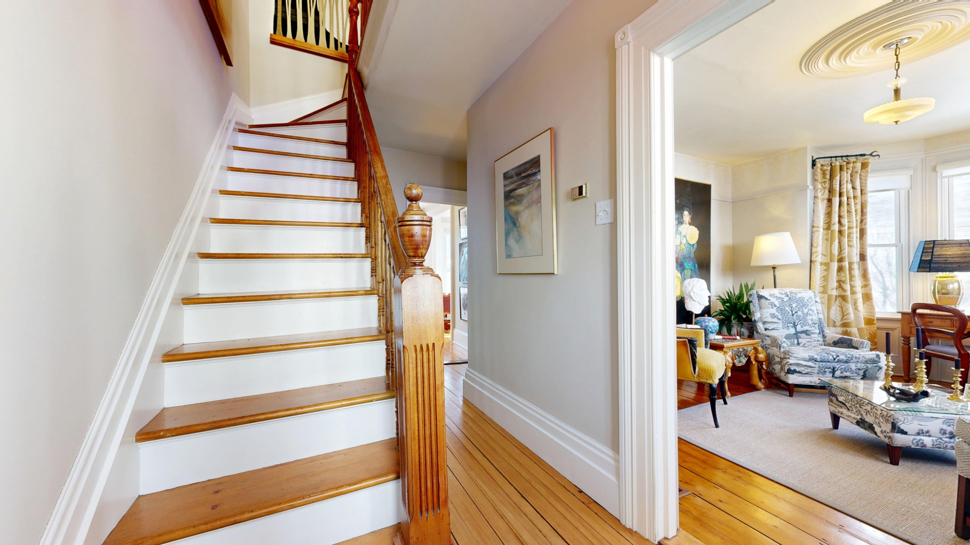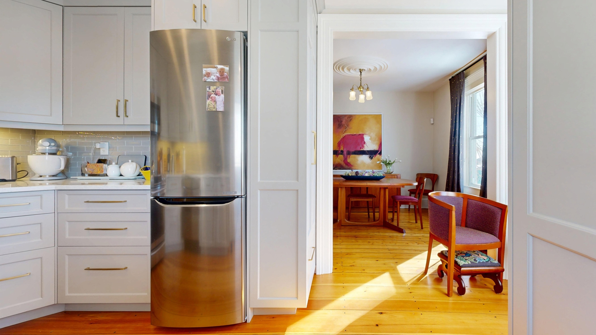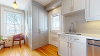 Tastefully restored and updated inside and out over the past 30 years, the exterior features fine detailing around windows & doors, and ornate deck & stair railings. Inside enjoy nicely refinished woodwork and beautiful softwood floors with a rich natural patina. The main floor features a pretty front parlour at the front of the house, and at the back, a beautiful custom Kitchen that adjoins a cozy sitting area and spacious Dining Room. A handy main floor Powder Room and coat closet are cleverly tucked behind a panelled wall.